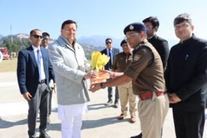 मुख्यमंत्री पुष्कर सिंह धामी का भराडीसैंण में आगमन हुआ, जहाँ उनका भव्य स्वागत किया गया। हैलीपेड पर, *पुलिस महानिरीक्षक गढ़वाल परिक्षेत्र, करन सिंह नगन्याल ,जिलाधिकारी चमोली सन्दीप तिवारी, पुलिस अधीक्षक चमोली सर्वेश पंवार, मुख्य विकास अधिकारी नंदन कुमार* द्वारा पुष्पचगुच्छ भेंट कर स्वागत किया गया तदोपरान्त सेरिमोनियल ड्रेस से सजी चमोली पुलिस के जवानों की लाजवाब सलामी ने जनपद चमोली आगमन पर माननीय मुख्यमंत्री का अभिवादन किया।