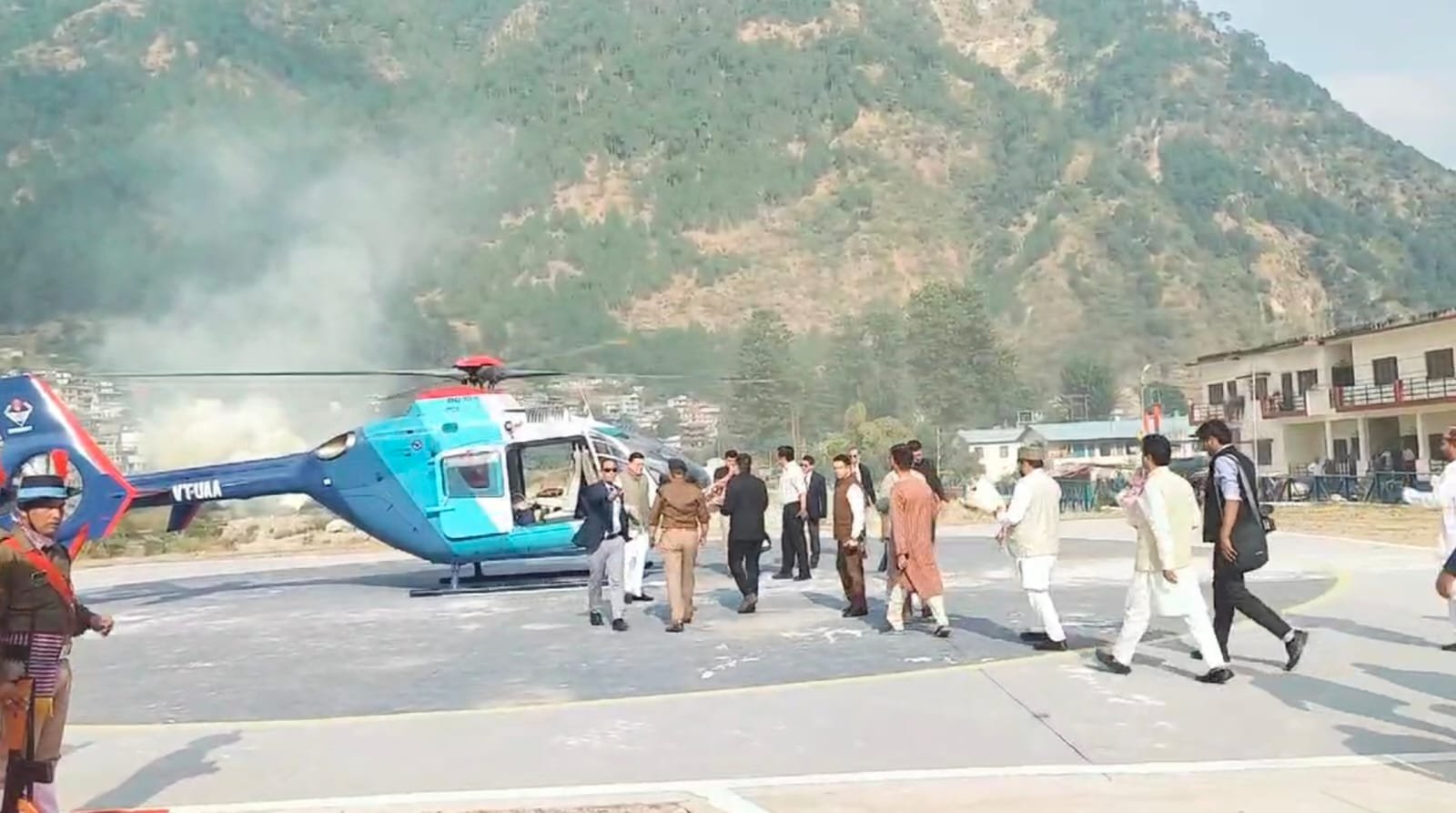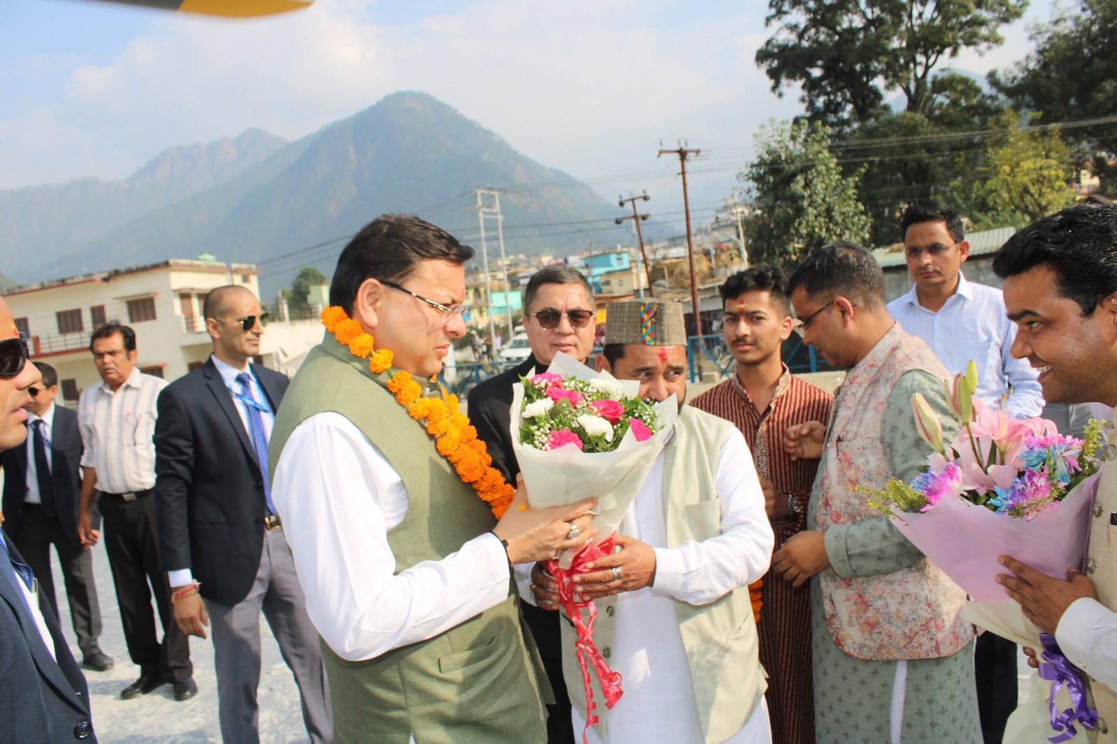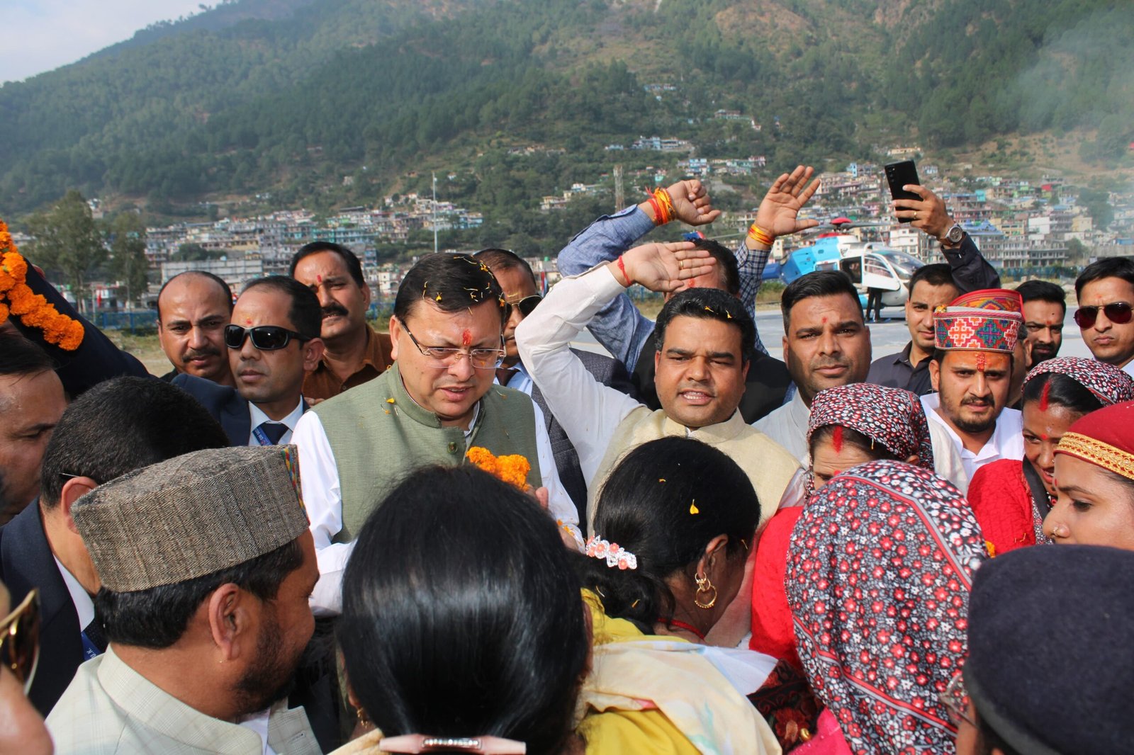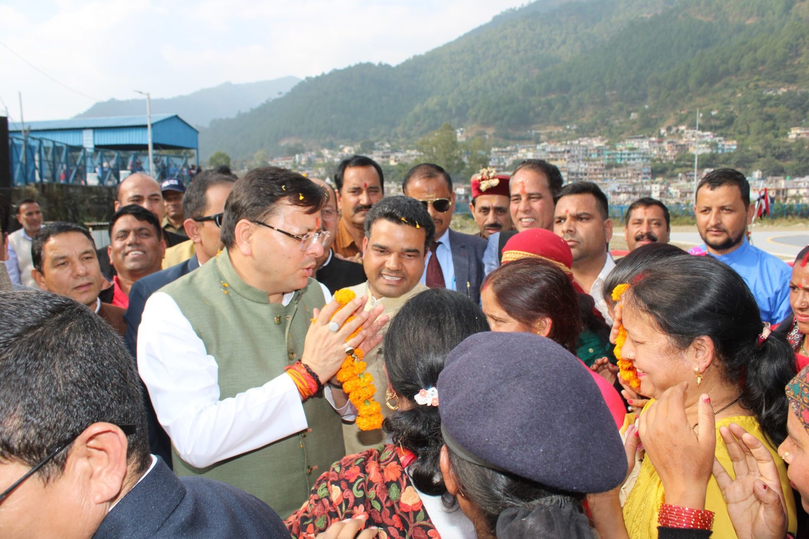उत्तरकाशी : मुख्यमंत्री पुष्कर सिंह धामी का नवनिर्मित जोशियाड़ा हेलीपैड पर भव्य स्वागत हुआ। राज्य सरकार द्वारा गुरूवार 7 नवंबर से देहरादून से उत्तरकाशी के लिए प्रारंभ की जा रही हेली सेवा इसी हेलीपैड से संचालित होगी। उत्तरकाशी भ्रमण पर आए मुख्यमंत्री पुष्कर सिंह धामी का हेलीकॉप्टर नवनिर्मित जोशियाड़ा हेलीपैड पर उतरते ही जिलाधिकारी डॉ. मेहरबान सिंह बिष्ट, क्षेत्रीय विधायक सुरेश चौहान सहित जन-प्रतिनिधियों, अधिकारियों एवं पारंपरिक परिधानों में सुसज्जित ग्रामीण महिलाओं सहित आम नागरिकों के द्वारा पुष्पगुच्छ भेंट पुष्पगुच्छ व फूलमालाएं भेंट कर तथा पुष्पवर्षा कर भव्य स्वागत किया गया।