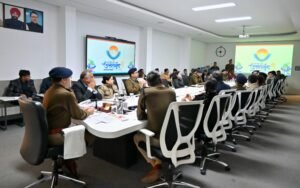 देहरादून। आज दीपम सेठ, पुलिस महानिदेशक, उत्तराखण्ड की अध्यक्षता में 38वें राष्ट्रीय खेलों के आयोजन की तैयारियों के दृष्टिगत गढ़वाल व कुमाऊँ परिक्षेत्र सहित समस्त जनपद प्रभारियों, सेनानायकों एवं सम्बन्धित ईवेन्ट मैनेजमेन्ट एजेन्सियों के साथ त्रुटिरहित सुरक्षा व्यवस्था, फोर्स व्यस्थापन प्लान, यातायात प्लान, पार्किंग, सुरक्षा व्यवस्था हेतु आवश्यक उपकरण के सम्बन्ध में वीडियो कान्फ्रेसिंग के माध्यम से एक उच्च स्तरीय समीक्षा गोष्ठी आयोजित की गयी।