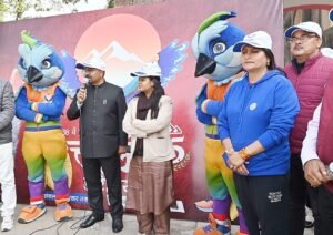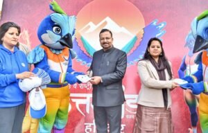 शुभांकरों ने जिलाधिकारी कर्मेंद्र सिंह व मुख्य विकास अधिकारी आकांक्षा कोंडे को 38वें राष्ट्रीय खेल की कैप भेंट की