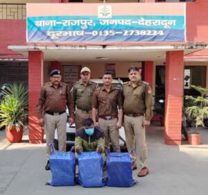 के विजन को साकार करने के लिये एसएसपी, देहरादून के निर्देशन में दून पुलिस द्वारा लगातार नशा तस्करो के विरूद्व प्रभावी कार्यवाही की जा रही है। इसी क्रम में एसएसपी देहरादून द्वारा दिये गये आदेशों में थाना राजपुर पुलिस द्वारा होटल /रेस्टोरेंट/ बार /वाहन तथा संदिग्ध व्यक्तियों की चेकिंग की जा रही थी। इसी दौरान मुखबिर के माध्यम से पुलिस को सूचना प्राप्त हुई कि एक गाडी में बैठे व्यक्ति द्वारा भारी मात्रा में गांजा पश्चिमी उत्तर प्रदेश से लाकर देहरादून, ऋषिकेश, हरिद्वार, विकासनगर आदि जगहों में बेचने हेतु आ रहा है , जिस पर पुलिस टीम द्वारा चैकिंग के दौरान सीएसआई तिराहा ओल्ड मसूरी रोड के पास से किआ गाड़ी नंबर यूके 07 टीडी 6895 को रोका गया तथा जब उक्त गाडी की तलाशी ली गई तो पुलिस को गाडी की डिग्गी में भारी मात्रा में अवैध गांजा बरामद हुआ, जिस पर गाडी में बैठे व्यक्ति बबलू को पुलिस द्वारा एनडीपीएस एक्ट में गिरफ्तार कर थाना राजपुर में अभियोग पंजीकृत किया गया।