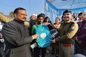 हरिद्वार। सड़क सुरक्षा के प्रति लोगों को जागरूक करने और सड़क दुर्घटनाओं को कम करने के उद्देश्य से जिले में हेलमेट वितरण अभियान चलाया जा रहा है। इस कड़ी में शनिवार को हरिद्वार के सिडकुल थाना क्षेत्र के राजा बिस्कुट चौक पर विशेष कार्यक्रम का आयोजन किया गया। कार्यक्रम में जिलाधिकारी कर्मेन्द्र सिंह और वरिष्ठ पुलिस अधीक्षक प्रमेन्द्र डोबाल ने दोपहिया वाहन चालकों को हेलमेट वितरित किए। अधिकारियों ने वाहन चालकों को सड़क सुरक्षा के नियमों का पालन करने का संदेश देते हुए कहा कि हेलमेट न केवल कानून का पालन करने के लिए जरूरी है, बल्कि यह जीवन की सुरक्षा के लिए अनिवार्य है।