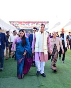 प्रयागराज। मुख्यमंत्री पुष्कर सिंह धामी ने रविवार को प्रयागराज, उत्तर प्रदेश पहुंचकर महाकुंभ 2025 में स्थापित किए गए उत्तराखण्ड मंडपम का अवलोकन किया। इस अवसर पर मुख्यमंत्री ने उत्तराखण्ड मंडपम में आए तीर्थ यात्रियों से मुलाकात कर उनका कुशलक्षेम जाना। गौरतलब है कि मुख्यमंत्री के निर्देशों पर राज्य सरकार द्वारा प्रयागराज महाकुंभ 2025 में उत्तराखण्ड मंडपम की स्थापना की गई है।