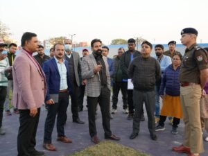 स्पोर्ट्स स्टेडियम निरीक्षण दौरान उन्होंने बहुउद्देशीय हॉल में बालीवाल व हैंडबाल, वैलोड्रोम में साइक्लिंग की सभी व्यवस्थाएं 25 जनवरी तक सुनिश्चित करने के निर्देश दिए। साथ ही उन्होंने स्टेडियम के अन्दर व बाहर वॉल पेंटिंग के कार्य भी 25 जनवरी तक पूर्ण करने के निर्देश दिए। उन्होंने कहा कि सभी कार्यों की प्रतिदिन कार्ययोजना बनाते हुए पूर्ण करने के निर्देश दिए व जिलाधिकारी को कार्यप्रगति भी प्रतिदिन देने के निर्देश दिए।