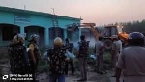 उधमसिंह नगर। आज जिलाधिकारी ऊधमसिंह नगर नितिन भदौरिया व वरिष्ठ पुलिस अधीक्षक उधमसिंह नगर मणिकांत मिश्रा द्वारा प्रशासन व पुलिस द्वारा जनपद में चलाए जा रहे अवैध अतिक्रमण के विरुद्ध प्रचलित अभियान के अंतर्गत थाना किच्छा क्षेत्रान्तर्गत ग्राम कुरैया मे सरकारी भूमि खाता संख्या 538 के खसरा नं01288 पर अवैध मदरसा अलजामियातुल हुसैनिया स्थापित अवैध मदरसे को ध्वस्त किया गया।