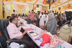 हरिद्वार। मुख्यमंत्री पुष्कर सिंह धामी की प्राथमिकताओं में शामिल सरकार जनता के द्वार कार्यक्रम के अंतर्गत जिलाधिकारी कर्मेंद्र सिंह ने ग्राम नसीरपुर कला, तहसील हरिद्वार राजकीय प्राथमिक विद्यालय परिसर में जनता मिलन/ जन संवाद कार्यक्रम आयोजित के ग्रामीणों की समस्याएं सुनी।